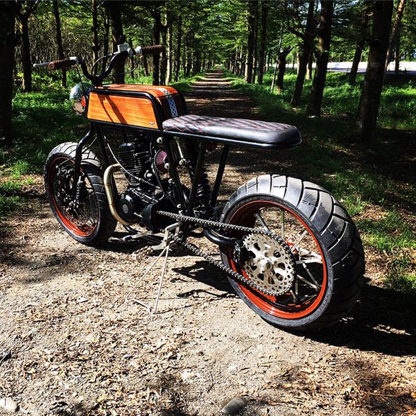 以scrambler風格為主題,從角落的一顆引擎開始發想,一部從頭到尾都是以手工打造的scrambler,因為一種信念而打造,只為了了完成人生中的目標。全訂製的車身搭配前後單臂式的前叉跟後搖臂,前後多連桿懸吊系統,輪圈、以切削的方式加工,排氣管,腳踏總成,座墊,空濾,隱藏於木製油箱飾板中的不銹鋼油桶跟電系。