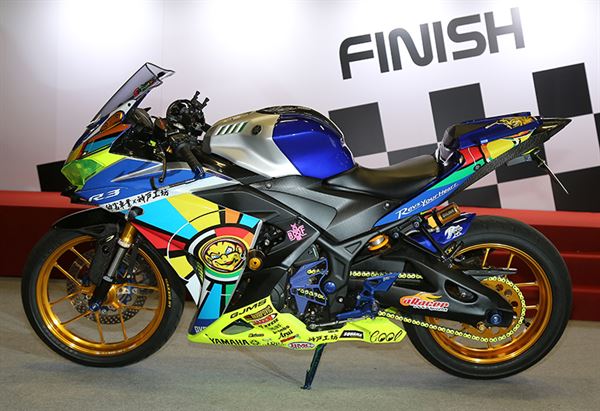 近年來在黃牌檔車的風潮越來越盛行,前幾年YAMAHA引進了人氣輕檔R3頗受好評,R系列的外型設計、易上手的300級距,馬上成為喜愛檔車的首選之一,更是入門仿賽重機的理想選擇,再來看這輛緊繃的改裝車前,先來回顧一下這輛車的性能規格,R3當時是 YAMAHA專為這一個新興市場所推出的強力機種,流線的外型加上如同上一級兄長所使用的整流罩設計,完全沿襲的雙燈更是讓人血脈賁張。如果把R3貼紙換成R6,真會讓人以為是重型的跑車、這次的改裝作品也有幾分大排量的視覺感受。引擎使用全新的水冷雙缸型式,車架也是完全針對此一級特性所設計出來。當然,迷人如其兄長般的雙燈帥氣跑車造型自是R3受到注目的原因之一。動力輸出使用的是具有42匹最大出力的DOHC 4閥水冷雙缸引擎(閥門徑進26mm、排22.5mm,汽門挾角進12度、排12.75度),採用180度曲軸設計,並備有一次平衡軸以減低震動。活塞使用具有輕量且低磨擦損失的鍛造結構,而高張力鋼管車架與漂亮的後搖臂,將整車前後配重分為50比50,除了提供輕快的騎乘性,更讓積極的騎乘時具有運動級的水準。前叉為41mm徑的KYB製品,後方使用MONOSROSS結構與單一避震。前後煞車使用的是298mm與220mm的單碟設計。前後輪更豪氣的使用了米其林PILOT STREET輪胎。可說是從頭到尾,從裡到外都散發出YAMAHA對這款車所下的心力。對車迷來說,更是絕對迷死人的輕型跑車。