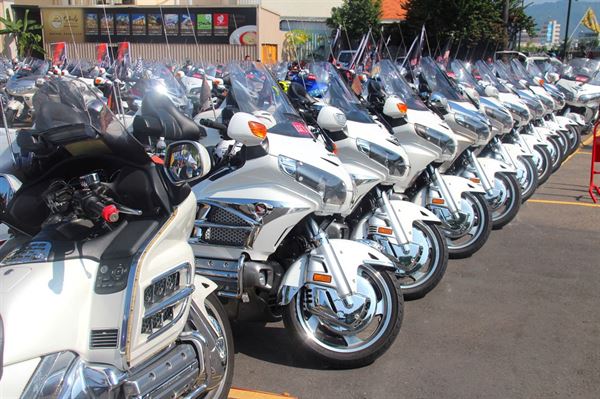 HONDA GOLD-WING自1975年問世以台來,經過40年的不斷進化,奠定它頂級巡航車的重要地位。豐富的周邊配備、收放自如的置物空間、媲美四輪房車的乘坐品質,優異的性能以及靈活的操控性,使GOLD-WING的地位難以撼動。現場一字排開的氣勢顯得相當霸氣。