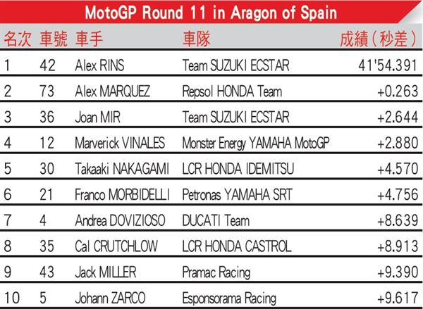 Alex Marquez強勢挑戰逼近Rins車尾
