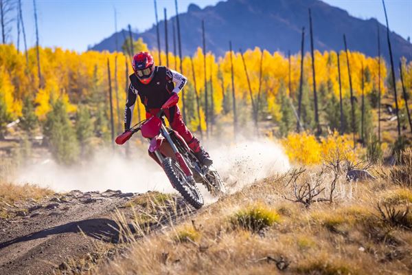 車身設計方面,DESMO450 EDX 採用鋁合金車架,重量極輕且兼顧剛性。底盤配置了 SHOWA 品牌的全可調倒立式前叉,提供 310mm 的避震行程,後避震則為 SHOWA 單槍後避震器,行程達到 330mm。輕量化鋁合金輪圈搭配倍耐力(PIRELLI)越野胎,確保在各種地形上都有出色的抓地力。制動方面,前輪採用 BREMBO 碟盤與卡鉗,搭配後輪的單活塞卡鉗,提供強大而線性的制動力。