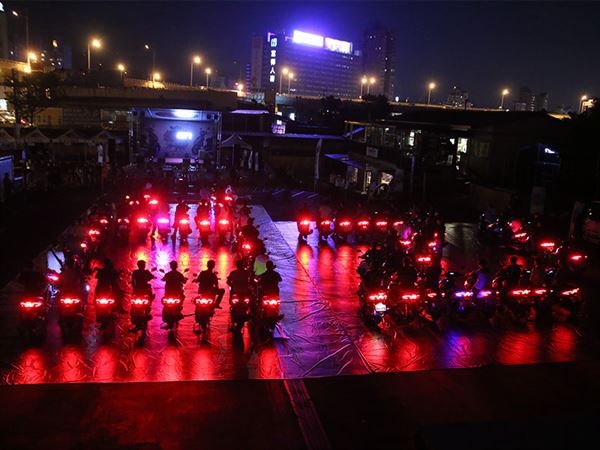 車友們在黑暗中利用車尾燈排出OZ!的字樣