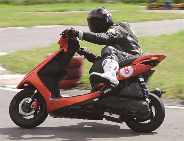 筆者在此也要提醒各位讀者,雖然這輛RX110賽車的專屬車手還是在學的國中生,不過不管是練車或比賽的騎乘場地都是在安全無虞的合法賽車場,騎乘時也都有各項專業人員在旁以備不時之需。在未滿十八歲以及無駕駛執照的狀況下,絕對不可以在一般道路上騎乘機車,請切記遵守交通法規。