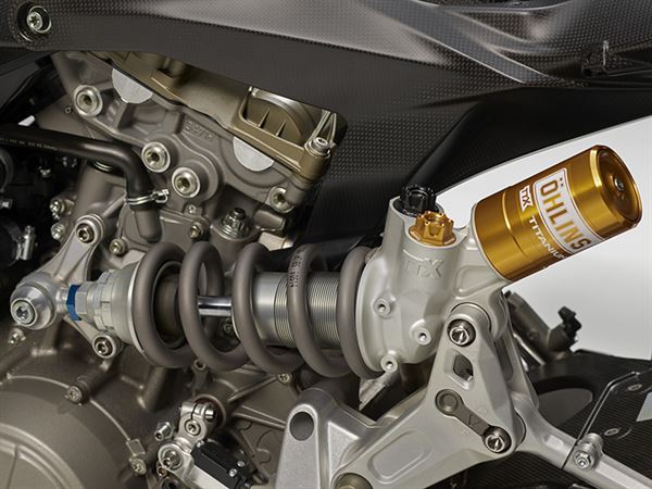 後避震採用鈦合金製成的Ohlins TTX36彈簧,有效地減輕0.5kg的重量