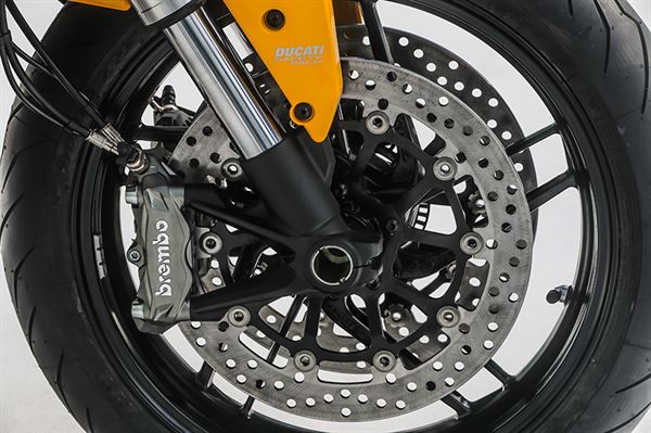 前輪採用BREMBO M4四活塞浮動卡鉗搭配53.58rpm它的實力,真的讓許多美好的回憶又320㎜雙碟的有力制動組合