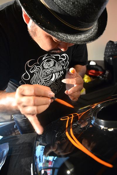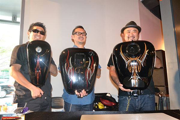 除了19部彩繪車現場展示外,活動也安排了三位日籍的彩繪師:小林誠、福田聖隆與後藤稔三人現場精采的藝術創作,直接在哈雷的油箱上進行拉線彩繪。三位大師與現場的哈雷騎士們互動熱烈,同時與騎士們交流拉線的技巧,以及拉線工具的選用,看的每一騎士們無不蠢蠢欲動,巴不得也拿起筆來在愛車上彩繪一番。