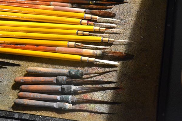 小林誠的畫筆,據說是用貓毛與松鼠毛所製成