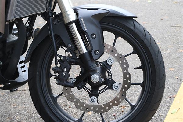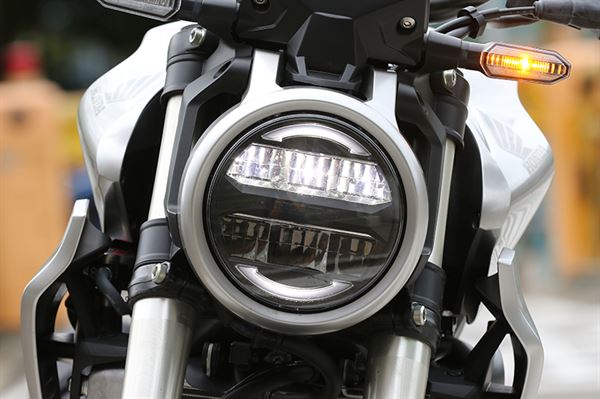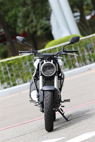 繼約略半年前的CB150R Exmotion之後,今日往上一級接觸到這一系列的中量級車款CB300R,其實在第一眼所帶來的印象其實相當類似:除了新一代CB家族共有的特色科技感LED頭燈、倒叉及那兼具粗獷與未來感的油箱,所勾勒出的窈窕身型,使得這台車擁有緊湊結實的車身線條,視覺衝擊在車身任何一處都絕無冷場;既然與CB150R Exmotion系出同門,在用料上更是不能漏氣,於是CB150R便配備那跨級距的41mm粗壯倒叉自然也同樣在CB300R車上重現,加上輻射卡鉗搭配296mm碟盤,使得CB300R在擁有31匹之譜的最大馬力之餘,也能俐落安穩地停下。另外值得一提的是,CB300R將ABS防鎖死煞車系統列為標配,並採用IMU慣性偵測系統,隨時監控車輛當下地傾角與速度,進而使電腦能夠精準判斷ABS的作動時機,增加ABS系統保全騎士安全的成功機率。精實的油箱及水箱側殼的設計則與CB1000R較為相似,大致保留了Neo Sport Cafe概念車的設計語彙,複合材質組成的油箱及油箱罩在近期蔚為風潮,除了能夠為油箱本體提供較完善的保護之外,油箱罩的外型也因此有了更多的變化。