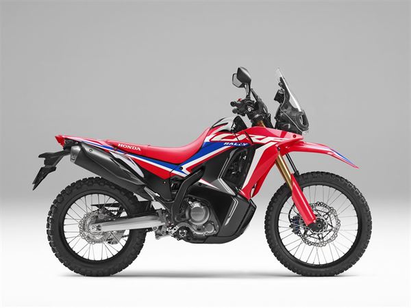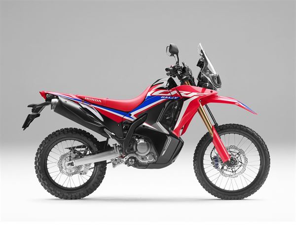 CRF250 RALLY則是以「達卡仿賽車的周末冒險者」為開發概念,除了維持市區到越野的優異性能之外,還提升了一直以來飽受好評的長途休旅性能和騎乘舒適度。外觀設計繼承了參戰達卡拉力賽的CRF450 RALLY,加裝具有優秀防風性能的大型風鏡和導流罩,加上安裝在車架上的左右非對稱式大燈,打造出超越250cc級距的外觀,給人威風凜凜的存在感,這次新追加了12公升大型油箱,提升油耗表現和旅遊性能,加裝了握把端子、替腳踏上安裝橡皮等等,讓各部位細部零件更加成熟,追求降低震動和提升舒適度。和CRF250L一樣,RALLY也有分兩個版本,一個是最低離地高度220mm、座高830mm的CRF250 RALLY和提升懸吊系統行程長度,讓最低離地高度增加到275mm、座高885mm的CRF250 RALLY〈s〉。