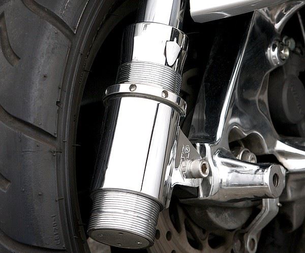 拋光的金屬避震器少見地沿用彈簧避震的形式,也有相當不錯的效果
