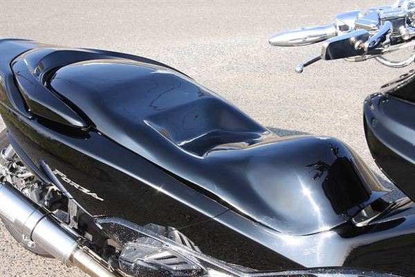 訂製的排氣管和加長的搖臂也讓後輪相當具有特色