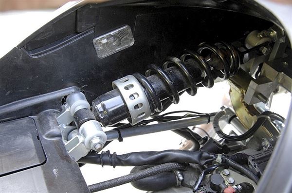 後輪避震配置在車身內側,大口徑的後輪有著壓倒性的存在感