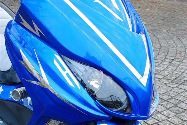 天藍色的塗裝搭配許多圖案和文字,帶來不一樣的車身感覺