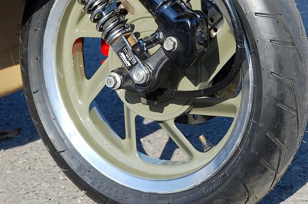 將輪框磨亮拋光後噴上和車身同樣的色調,增加視覺上的一致性