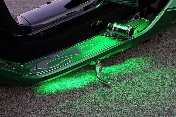 銀色拋光的金屬踏板搭配螢光綠的光線也別有特色