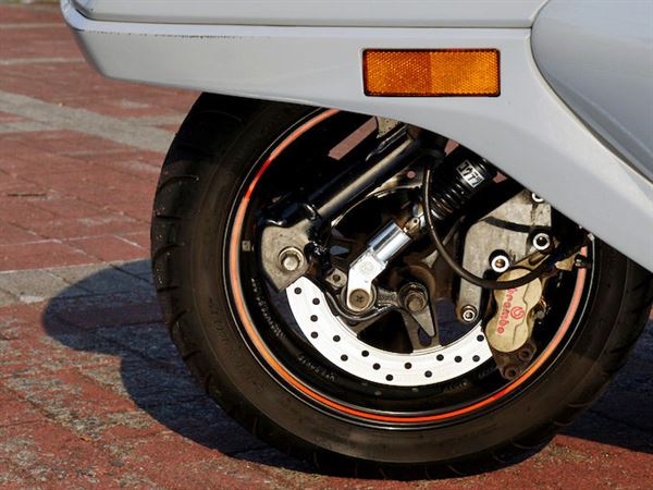 替避震器施以特殊加工讓車身降低,並且換上Brembo的煞車卡鉗
