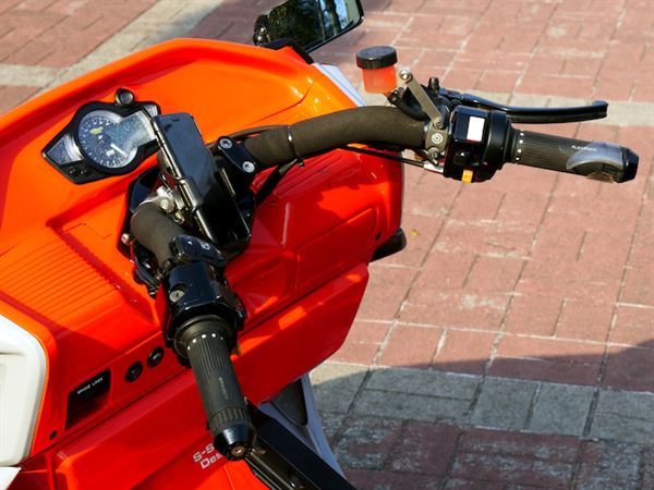龍頭採用稍微內縮的款式,因為拋光金屬的材質和車身不搭,所以刻意綁上橡膠