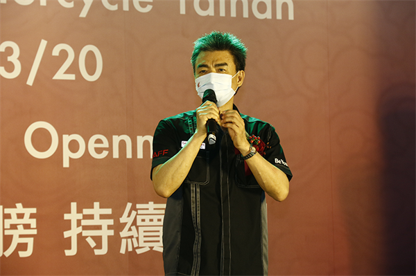 Honda Motorcycle 台南店的謝董事長上台致詞,希望日後台南店能融入社區,服務更多人