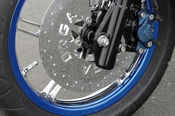 採用藍色的鋼圈和煞車卡前打造出一體感