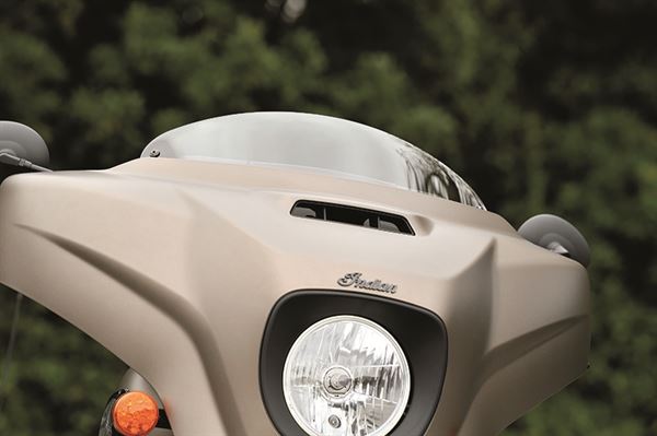 從外觀上就洋溢著安心感的外觀有著相當現代的設計,風鏡與馬鞍箱和車身融為一體,龐大的車身卻給人俐落的印象,另一方面,經典的氣冷V行雙缸造型也能看出INDIAN的傳統,不過消光黑的排氣管卻帶來狂野的點綴。