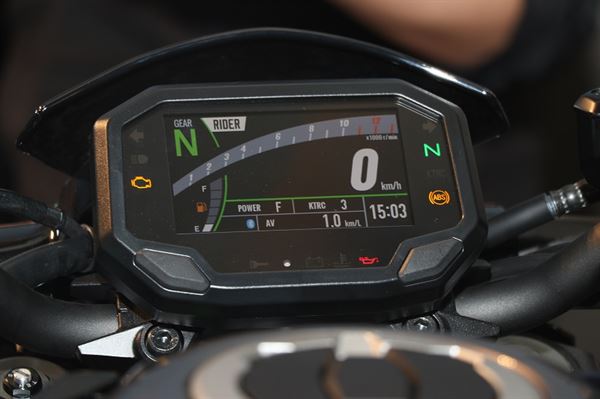 科技配備的提升也是此次Z900的一大賣點,Z900搭載了一個全彩的TFT儀表板,除了能切換黑白兩種底色與三段亮度調整外,除了平時常見的時速與轉速外,這顆儀表板還能提供剩餘里程、檔位、保養提醒等貼心提示,kawasaki為了讓騎車與生活更加智慧化,在車輛中加入了藍芽模組與車主的手機進行連線,讓儀表板同時能顯示來電與訊息的提醒,更能搭配全新的RIDEOLOGY APP 來整合多樣的行車數據,車主可以透過與車輛連線後獲得車輛的騎乘數據與保養資訊等訊息外,還能記錄騎乘軌跡來製作旅遊日誌,讓騎乘生活更加有趣。