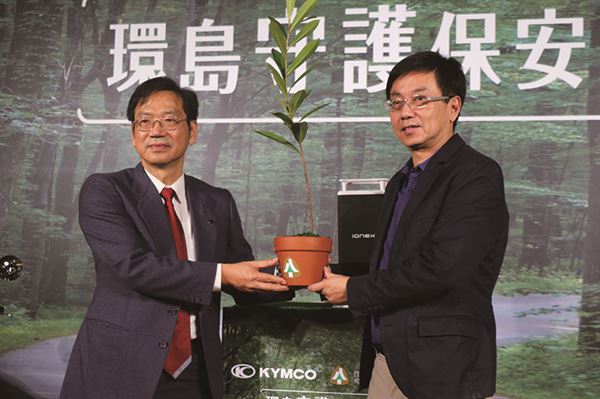 在會中也特別舉辦捐車儀式,為現「零排放護山林」的環保理念,KYMCO贈與18輛Ionex MANY 110EV電動車予林務局國家森林遊樂區,作為園區內的公務車輛使用,林務局局長林華慶也以台灣原生種樹苗回贈,象徵兩者的緊密合作。光陽集團執行長柯俊斌於記者會中表示:「為感謝台灣這塊土地多年來的照顧,光陽多年來始終以深耕永續的態度體現企業社會責任並戮力社會關懷,期望以機車產業的龍頭身份,帶頭守護台灣環境,讓更多民眾了解生態與保育之重要,冀望能起拋磚引玉之效,讓更多企業一起加入,攜手民眾一起為環境永續共同努力!」