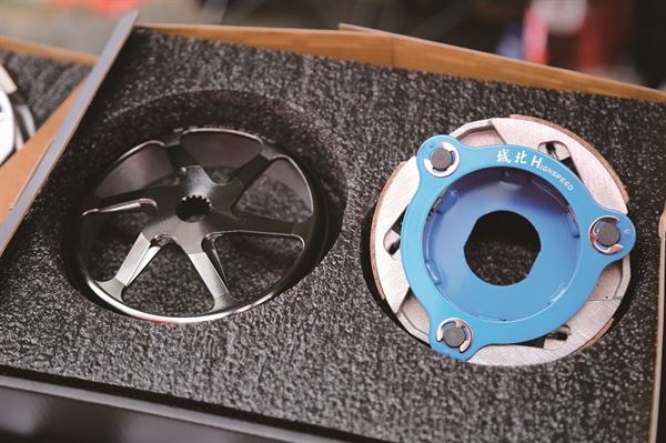 國內老字號性能部品品牌- 城北部品,這次帶來的傳動系統零件在展內也吸引了不少目光。包括離合器及碗公的套件,或是普利盤、普利珠及大彈簧等零件也能在城北的攤位上看見。