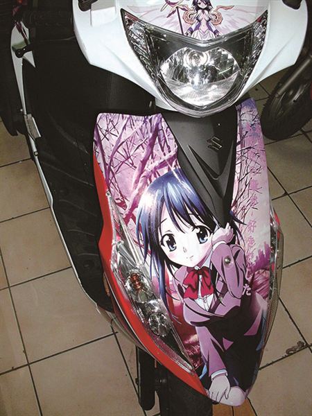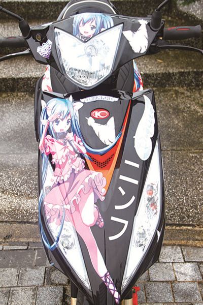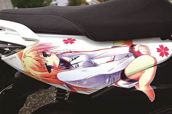 這樣突顯個人風格的痛車就完成了喔!不過要特別的是完工後三天內不能洗車,要特別注意有沒有氣泡及邊緣翹起的現象,這些都要盡快處理。