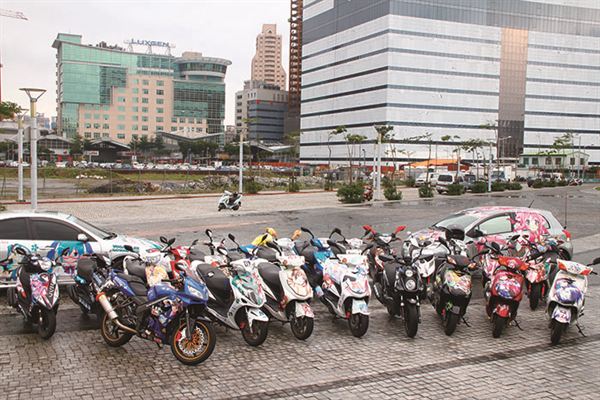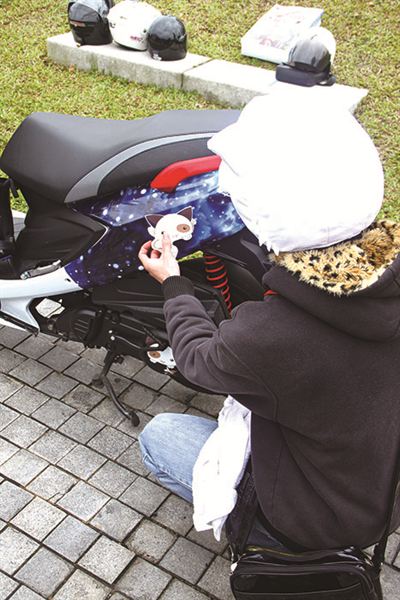 取得圖檔之後要規劃出哪張圖要弄在車的哪個部位。以機車來說,前方與兩側是配置大圖的區塊,其他如腳踏下方、前方、龍頭、前後擋泥板、置物箱、油箱蓋,甚至前叉都可以列入小圖、LOGO的貼附目標。