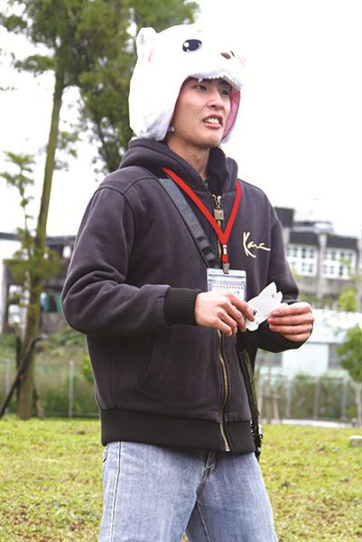 MOE燃燒萌痛車發展協會會長:紅廉,今天戴著可愛的貓耳帽出場喔!