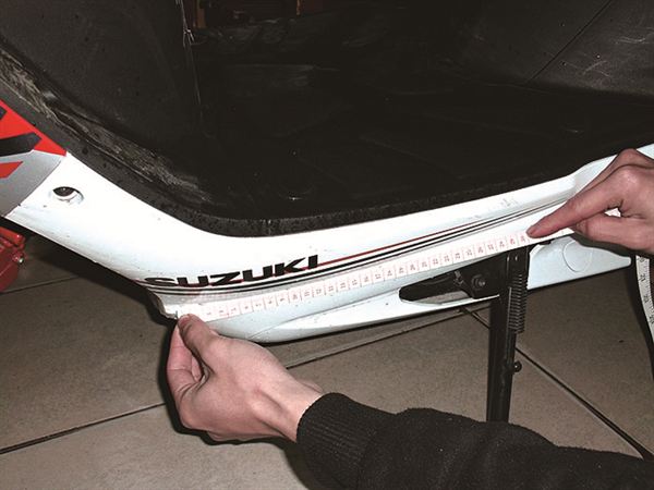 圖完成後,要進行實際輸出尺寸的丈量。尺寸丈量是圖的設計進行,愈複雜的車體需要更精細。重點一定要使用軟式捲尺,平貼在車體上依原本弧度測量。但就算用軟尺測量,圖與實際完成也還是會有不同,所以輸出時要預留弧度變形的範圍,便得將貼紙做得更大一點。