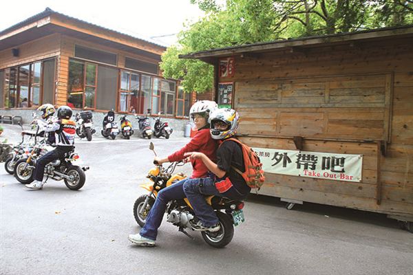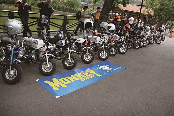 猴友們將小猴整齊的停放在景致優美的車埕儲木池畔,大伙就在木茶房餐廳享用造型可愛的圓形木桶便當,餐廳的標誌就是隻可愛的猴子,就連木頭便當盒上也有猴子圖案,真是超應景的!午餐過後大家就在池畔休息聊天,好好端詳彼此的愛車,猴、猿、金剛齊聚一堂,不管是超屌的邊車猴、超高把等等都能一次看個夠,改裝品方面歐林老師避震器、YOSHIMURA排氣管一樣不缺,猴友們還在活動布條上簽名,集體拍攝會師大合照留念後,再束裝出發上路,回程到紫南宮的停車場解散。這次聚會來了超過30隻猴子,真是猴塞雷,全猿集合大成功!
