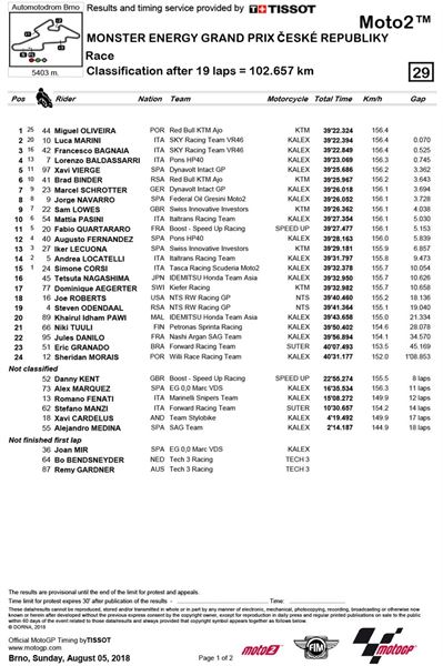 Andrea Dovizioso (Ducati Team)在白熱化的戰鬥中脫穎而出,從Marquez (Repsol Honda Team)和隊友LORENZO中取下勝利,也帶給了觀眾精彩刺激的比賽,最後由LORENZO獲得第二,DUCATI的選手並列一、二名,Marquez奪下第三