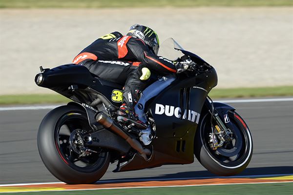 連同Crutchlow一起到DUCATI的還有他在Monster Yamaha Tech 3車隊總技師Daniele Romagoli及技師團,在測試期間所碰到的問題與今年DUCATI選手們碰到了問題一樣─缺乏前端的抓地力,英國人表示這與他在騎日本車的時候有非常大的不同,一切的環境也都還在適應中,在為期三天的測試下來圈數並不算多,把工作的重點放在賽車的設定方面,嘗試了新的車架、整流罩等等,雖然速度上沒有明顯的感善,但確實收集到許多有用的數據,前的工作是要讓團隊及自己更融入2014年的Desmosedici賽車,而不是削減更多的時間,或許會這麼想他在第二天的轉倒後所認知到的現況。