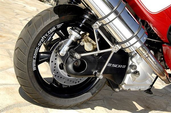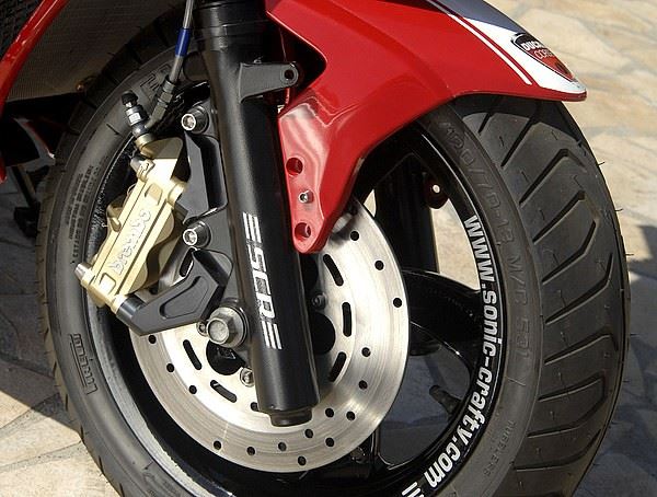 搖臂選用的是APRILIA的原廠產品,卡鉗則換上了BREMBO的對二卡鉗