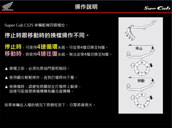 Super CUB C125能透過引擎內部的設計達到按壓離合器的效果