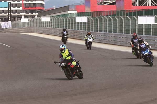 在賽道騎乘想要有所提升的話,第一步絕對是騎乘姿勢上的修正。首先將騎乘位置微微向前,並使用膝蓋與雙腿固定住車身,同時雙腳也需施加力量在腳踏之上,整個下半肢以盡量貼合車身為原則。