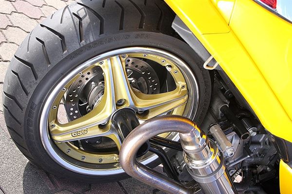 極具特色的後輪輪框,扭了一圈往前的排氣管形狀也值得一看