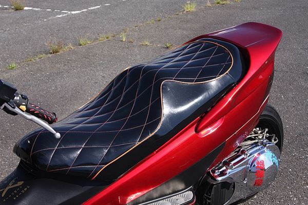 鮮紅色的塗裝黑色的座墊搭配金色的格紋飾線,讓整台車提升了許多質感