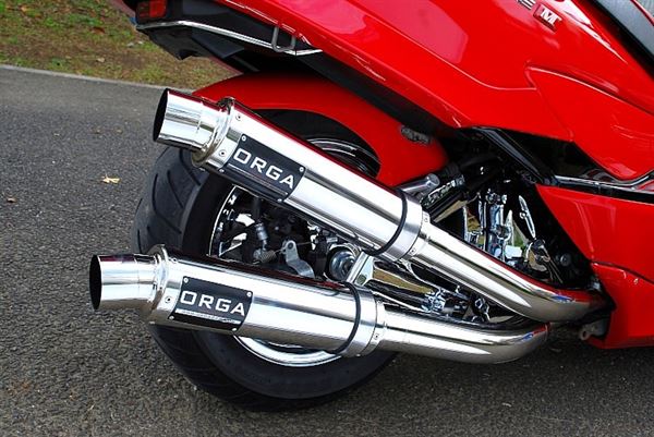 金屬拋光雙出式排氣管,裝設角度剛好擋住延長的搖臂