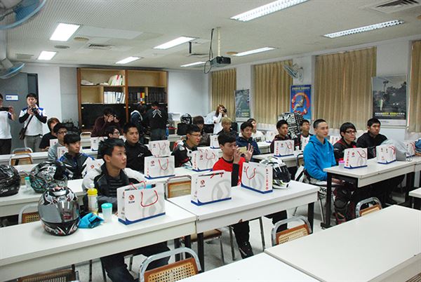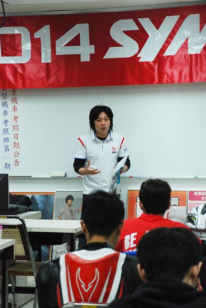這次兩天一夜的賽車訓練營,就在三陽的課長簡短致詞後馬上開始,精彩的室內課程,請來了台灣騎士發展運動協會(TSR)會長吳仲軒授課,教導學員們賽車的觀念以及相關規則,吳會長也分享了自己在賽車場上的許多經驗,生動的描述了賽車場上的故事,讓學員彷彿身歷其境一般。