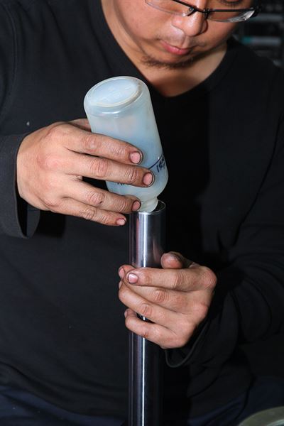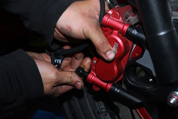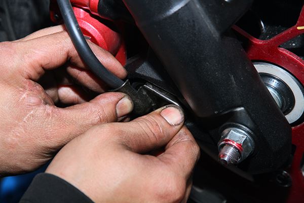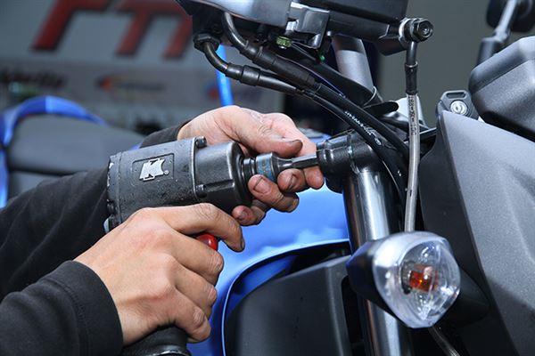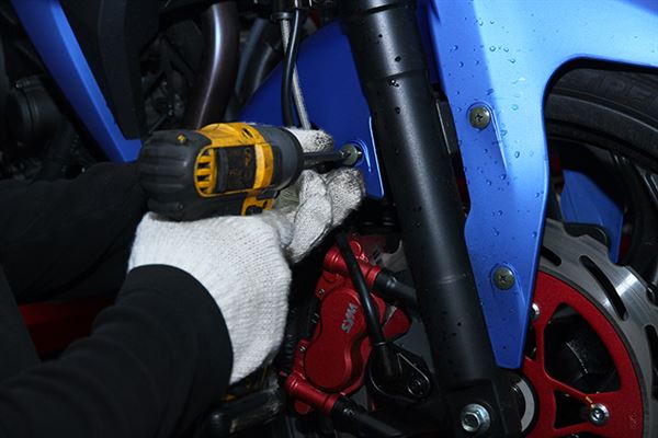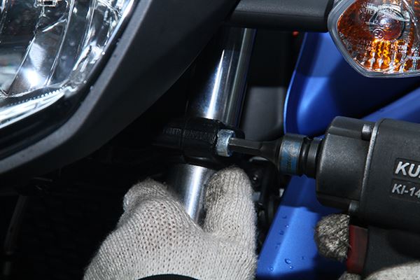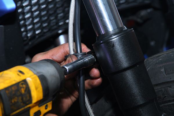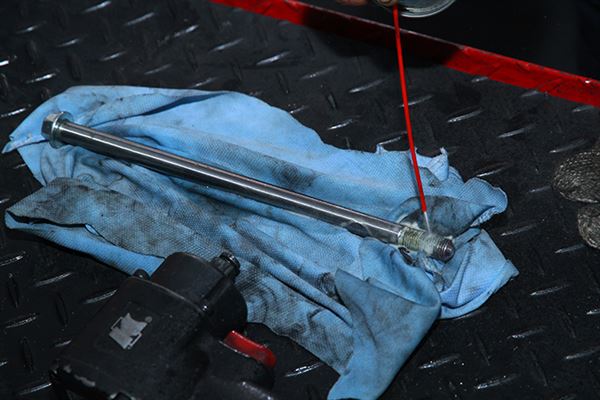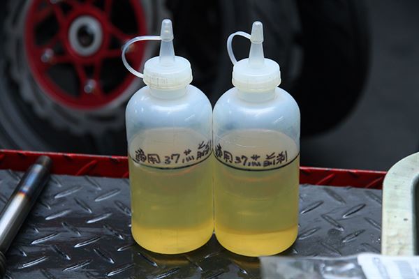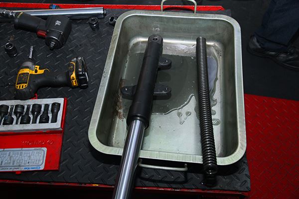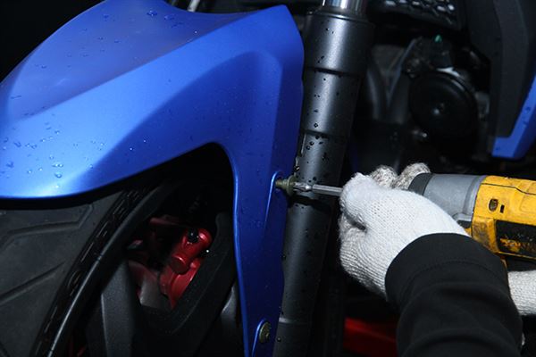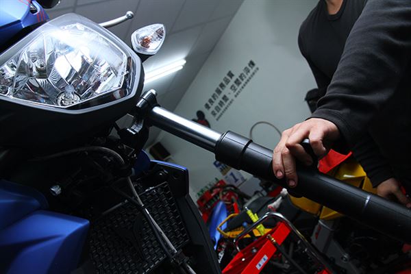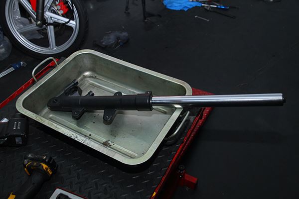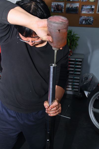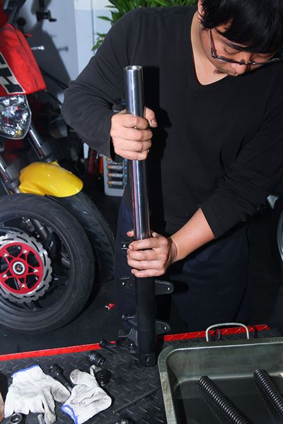 將前叉上下抽取,讓清潔劑完整清潔前叉內部。
