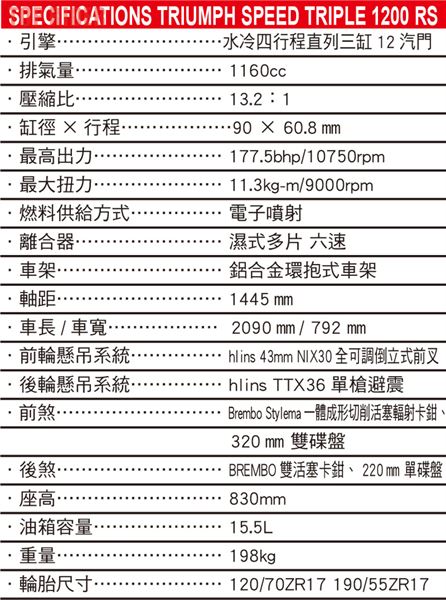 TRIUMPH SPEED TRIPLE 1200 RS 規格表