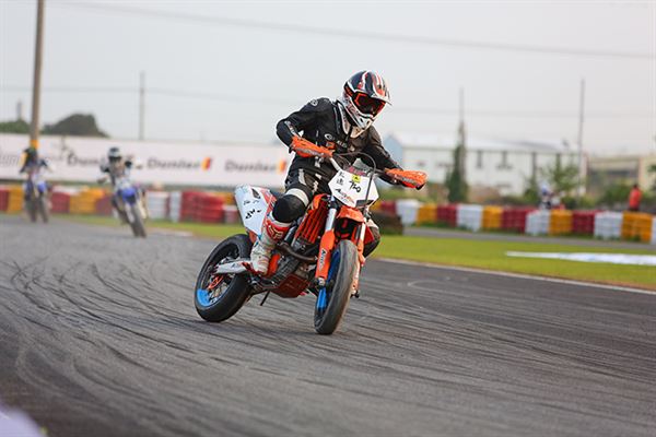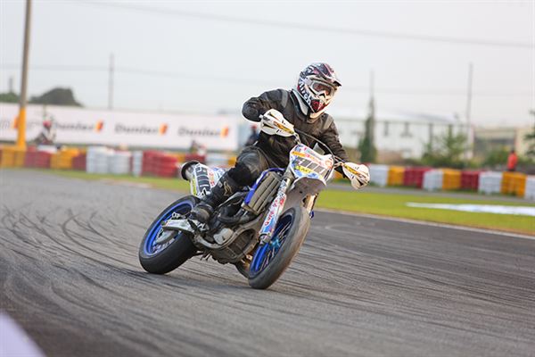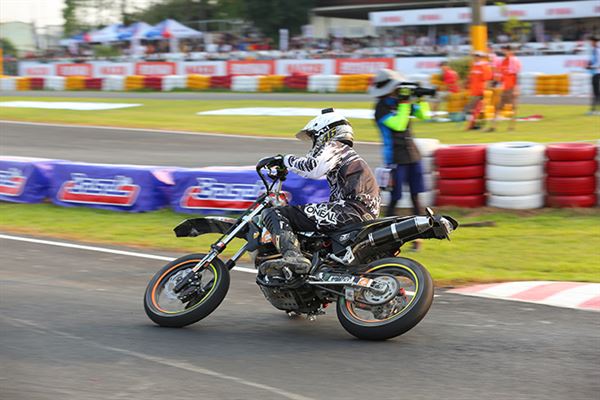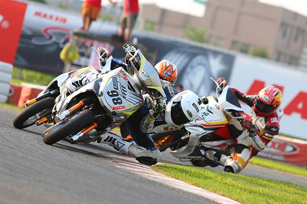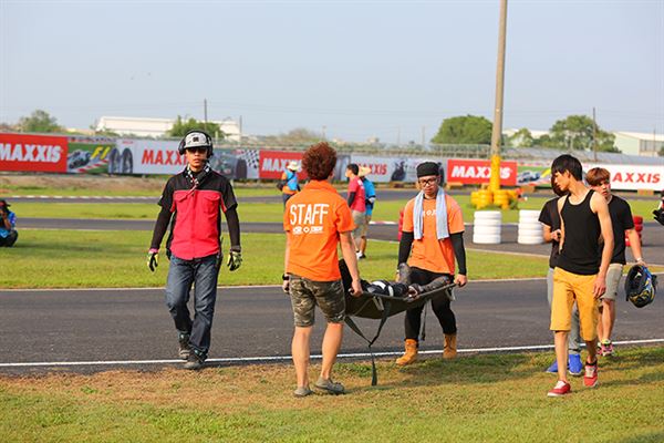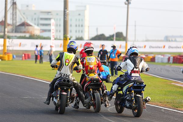 從參賽選手的名單中,我們看到了許多熟悉的面孔,包含新人王者‧黃皓、台灣最速貴公子‧陳貿宏、萬能雙棲選手‧邱科龍、M-POWER老闆‧陳威良等,全都是一等一的好手。在起跑之後競爭更是激烈,首先由穿著新皮衣的邱科龍搶先入彎,此時黃皓以及陳威良乘勢緊跟隨後,陳貿宏則是被壓制在後方,但慣於騎乘C組車的黃皓馬上以精湛的騎乘技巧搶回首位,此時邱科龍仍不罷休,又將首位硬是扳回。賽事到了第十圈,陳貿宏已經搶回第二位,並且更是將黃皓壓制,直到賽事最終圈,黃皓憑藉著復合式的OMEGA彎總算拿回第一順位,並且順利奪冠。整場比賽精彩絕倫,多次的精彩攻防更是讓新手們大開眼界。