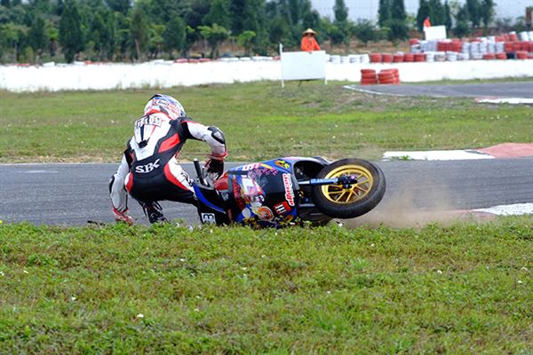第二回合的第一圈,同樣也發生車手轉倒的意外。