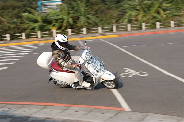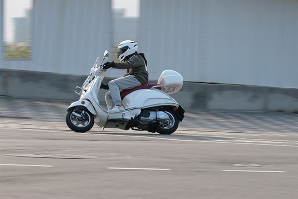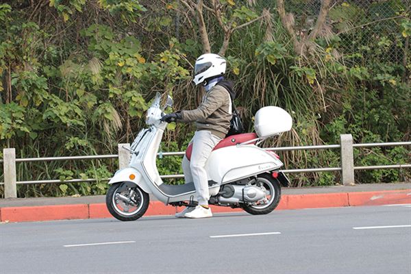 首先,從車體線條上摸索,除了過去流線滑順的車體線條韻味依舊存在,其所投入的車體最佳化點焊技術,讓Primavera車體強度遠遠超越過去品質,以汽車車體點焊技術製作機車車體絕非首例,但能在將此技術精化到車軸尺寸增長後,還能有效減輕車架重量,就非輕易達成的目標了。再配合整體組裝機件的交互作用,使其騎乘質感超乎筆者期望,極佳的路面衝擊處理與靈活騎乘反應,使得Primavera 125ie更受騎士喜愛與肯定!其動力表現上,三氣門引擎所建構的動力曲線、隨傳即到位的表現,都讓筆者大感意外,不管是擁擠的市區道路或是寬廣的郊區,轉下油門的瞬間,其直接、敏銳的動力反應,完全不會出現一絲遲疑頓滯!