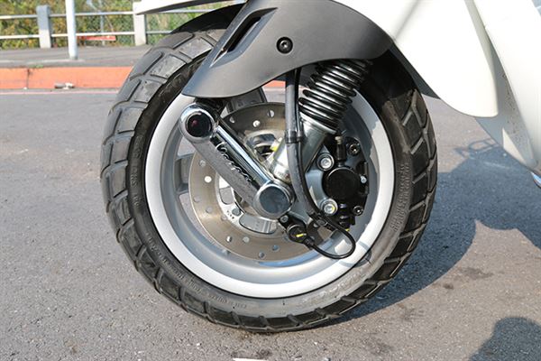 前後11吋的胎圈配置,搭配110/70與120/70的前後胎規格,不論是何種多元複雜的路面狀況都能穩健走行;強勁且直接的前碟與後鼓煞車系統,其制動反應讓車輛在臨急時,絕對能夠及時煞停,避免意外的發生!千萬不要因為看其車身尺寸,而對煞車制動表現有所疑慮,不需過大的制動操控力度,就連女性消費者也能輕易掌握呢!