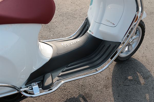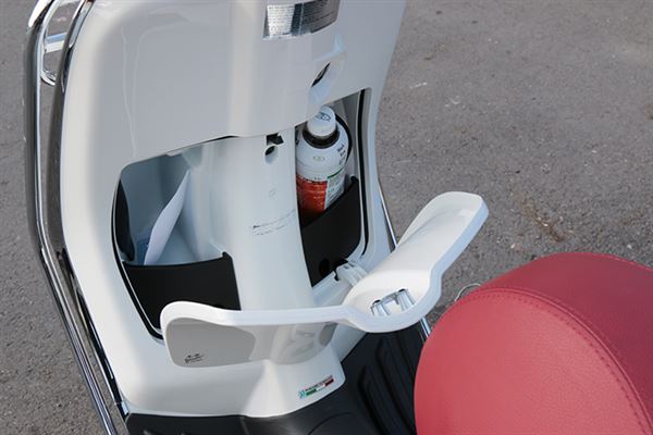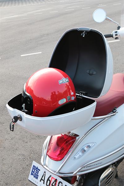 Vespa為打造最佳化車體結構,除了投入最新車體點焊加強其鋼性之外,其進化般地的改變也讓人十分驚豔,印入眼簾的車型尺寸就是一例,前窄後寬的流線車體線條曲線,是其流傳多年的經典所在,在此之下,椅墊置物空間的改變更為騎士帶來更多的便利性,經由車體機件與電池的配置改變,其置物空間和過往車型的14‧3L相比,足足多出了2.3L的空間直逼16‧6L,全拜車體打造技術的變革所賜,才得以有此優勢創造如此經典工藝之作。