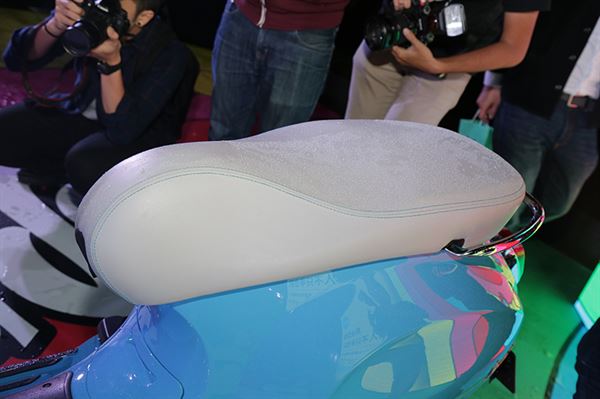 精緻的點心、有音樂品味的DJ、調酒及賞心悅目的會場佈置, 讓這場發表會即便是在雨中舉辦,仍有不少人願意共襄盛舉。但我想,所有人最期待的還是台上等著揭幕的Primavera 50° Anniversario吧!由太古汽車摩托車總監Alvan Huang與Piaggio集團Pierre Sainton先生共同揭幕。這次的特仕車款主打兩種車色,分別是丹寧藍以及可可棕,坐墊顏色也是搭配車色去挑配的,整體配色非常協調且耐看。除了特別的車色之外前置物箱蓋上的50週年專屬名牌也是Primavera 50° Anniversario獨有的。