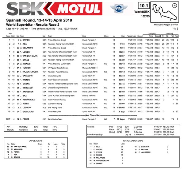 WSBK:亞拉岡站成績─RACE2